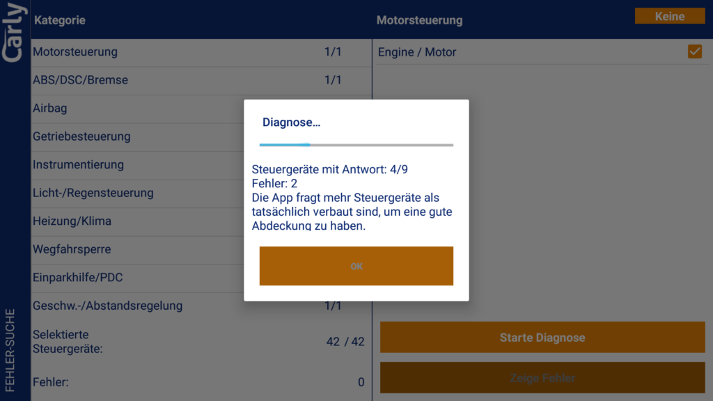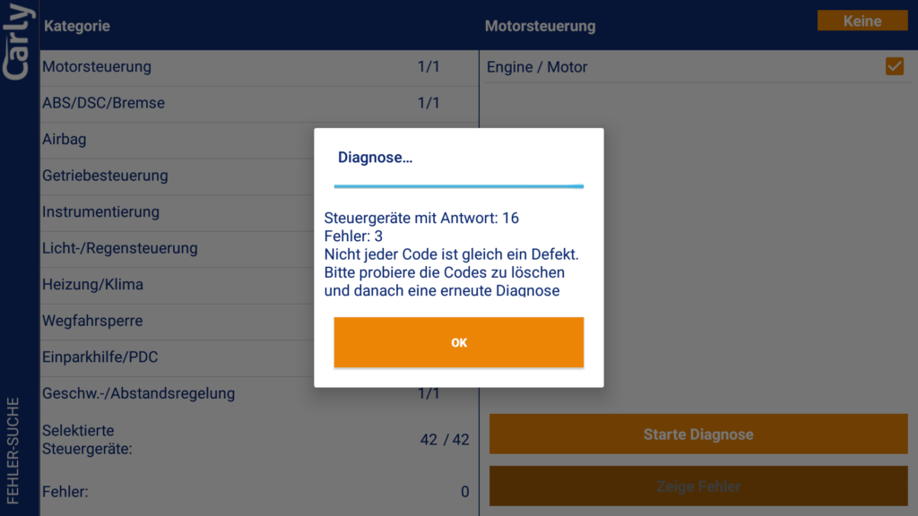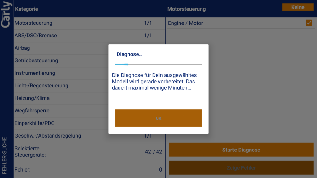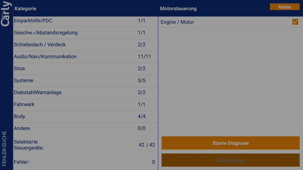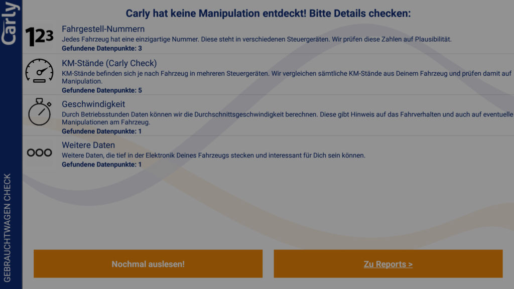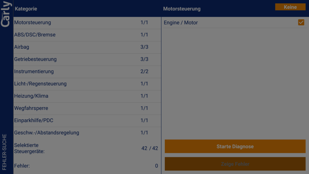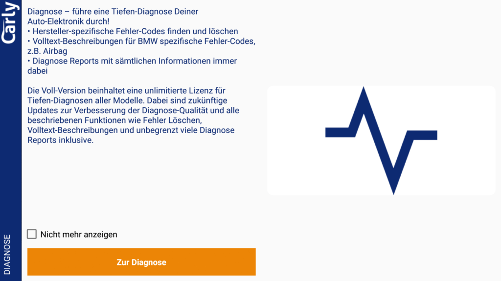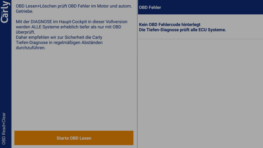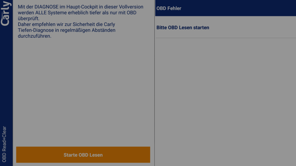 Ohne Lizenz kannst du eine (kostenlose) einmalige Diagnose durchführen und die Diagnosedaten dann von Carly per Mail auswerten lassen. Dies dient scheinbar zum Test vor dem Kauf. Auch der Gebrauchtwagencheck ist einmalig ohne Lizenz nutzbar.