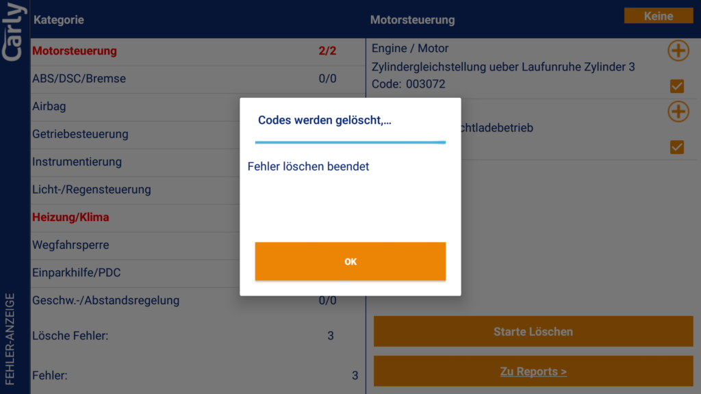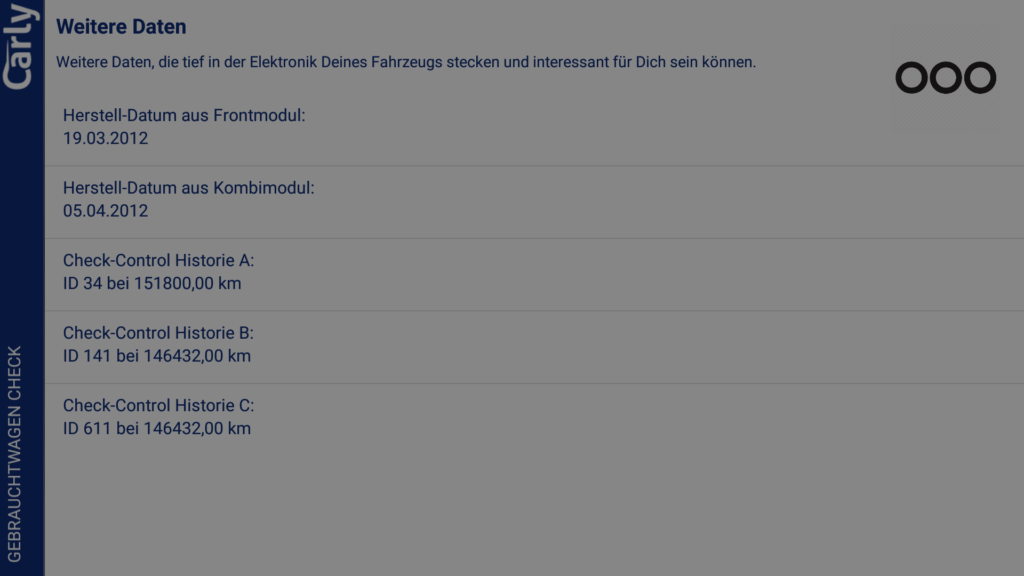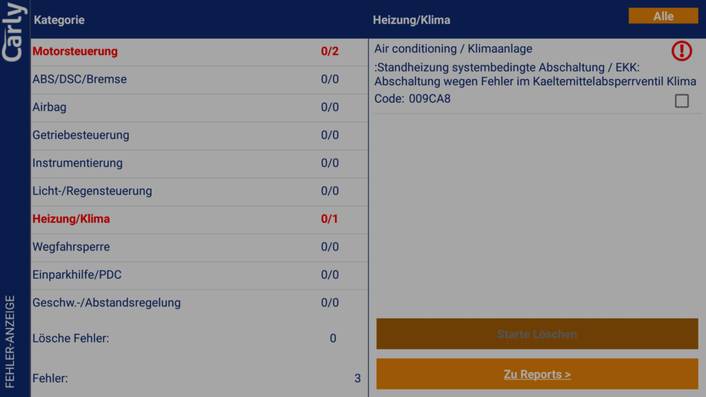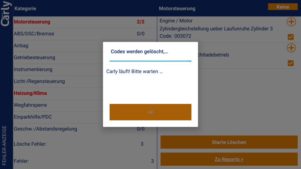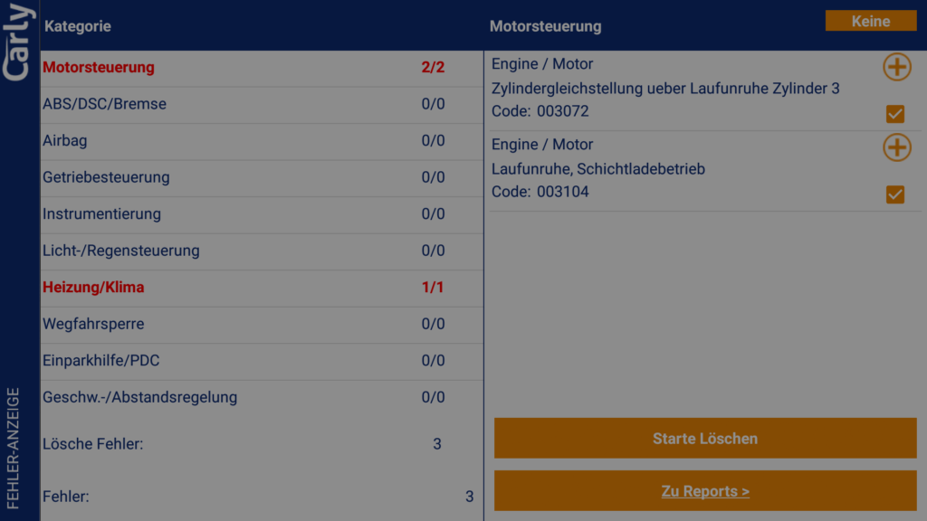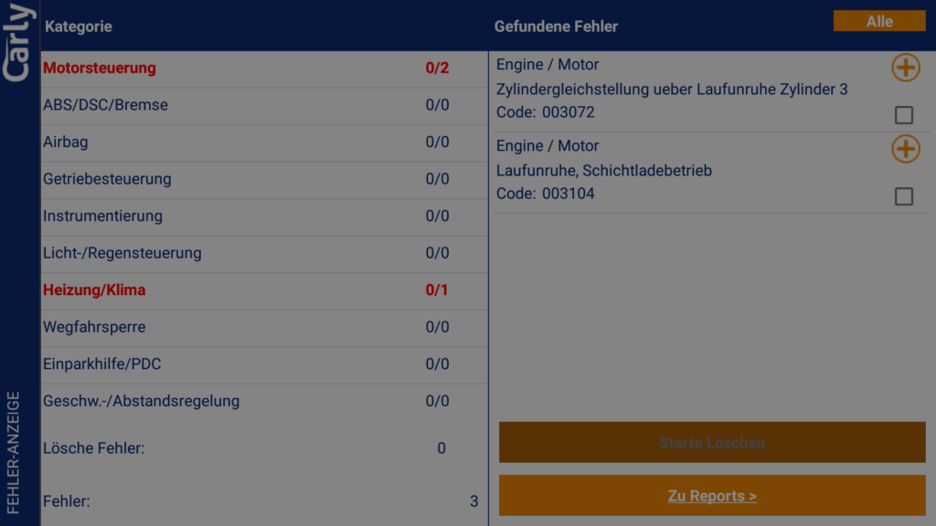 Bei unserem BMW F30 335i gab es neben dem Fehlerspeicher auch einen Informationsspeicher in dem Warn- und Infomeldungen abgelegt sein können. Diese wurden von Carly anstandslos ausgelesen und angezeigt.
