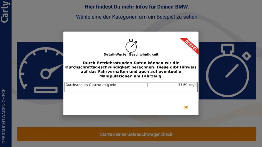 Wir hatten vor Ort (leider) kein manipuliertes Fahrzeug zur Verfügung und können die Funktion nicht verifizieren. Aber die Erklärungen auf der Herstellerwebsite klingen plausibel: Wird beispielsweise am Tacho gedreht, sinkt die Durchschnittsgeschwindigkeit des Fahrzeuges, wenn man es mit den Betriebsstunden des Motors gegenrechnet. Auf Auffälligkeiten macht die App dann aufmerksam. Schöne Idee für unbedarfte Autokäufer!