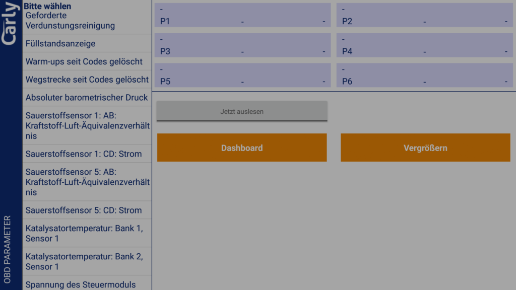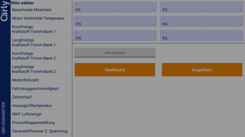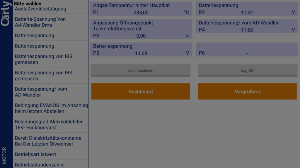 Die Live Parameter Funktion hat uns sehr gut gefallen. Sie erlaubt es verschiedenste Fahrzeug Paramter live auf einem Dashboard oder in einer Liste anzuzeigen. Darunter sind die beispielsweise diverse Spannungen, Temperaturen, die Geschwindkeitkeit, Drehzahl uvm. Die angezeigten Werte dort waren Plausibel. Teilweise gibt es Einträge doppelt, es werden aber leicht unterschiedliche Werte angezeigt.
