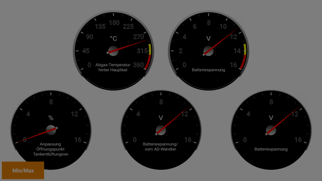 Die Analoganzeige ermöglicht den Einsatz als Software Dashboard im Fahrzeug, beispielsweise beim Rennstreckeneinsatz um bestimmte Werte immer im Blick zu haben. Auch in Hinblick mit der Fehlersuche kann die Anzeige hilfreich sein.