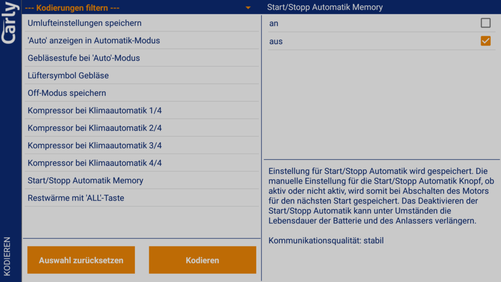 Start/Stopp Automatik Memory (IHKA)