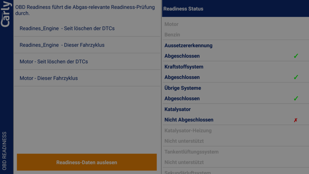 Leider ist für unbedarfte Nutzer nicht klar, was OBD Readiness bedeutet. Da wäre etwas mehr Dokumentation hilfreich gewesen.