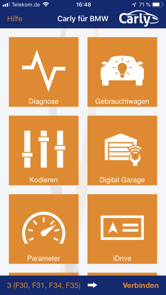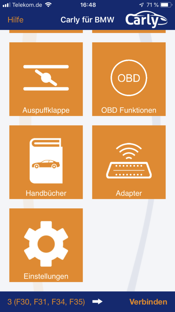 Der BMW F30 335i wurde leider von der App (noch) nicht unterstützt.