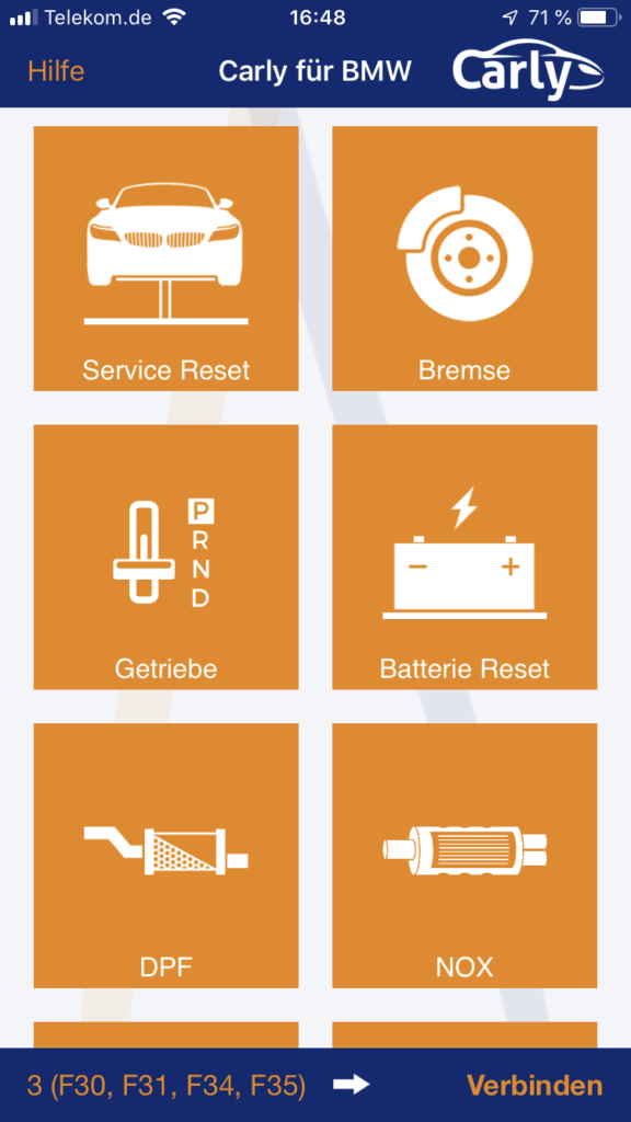 Nach dem Boardcomputer von unserem BMW E91 320d war ein Ölwechsel fällig. Dann muss ein Service Reset durchgeführt werden, damit das Fahrzeug anschließend wieder rechtzeitig auf den Ölwechsel hinweisen kann. Dies haben wir problemlos mit der App durchführen können.