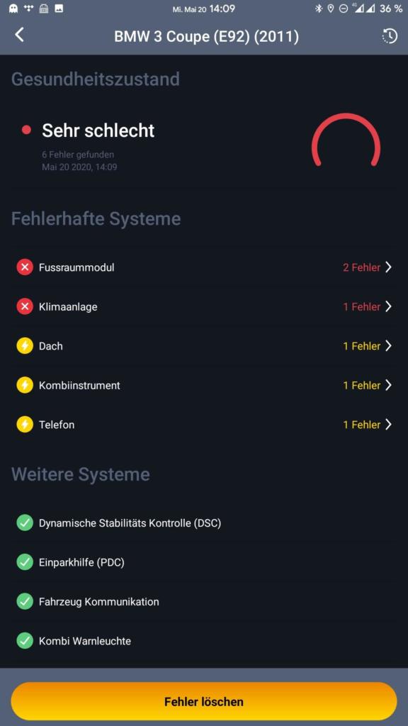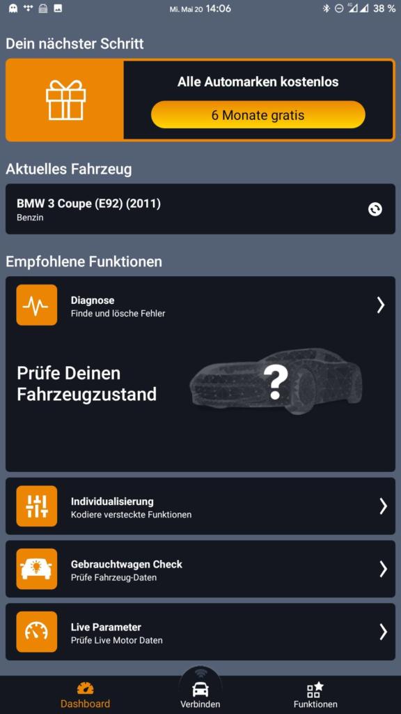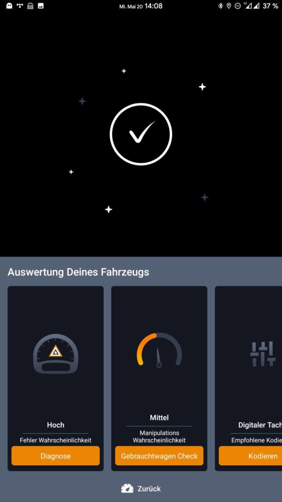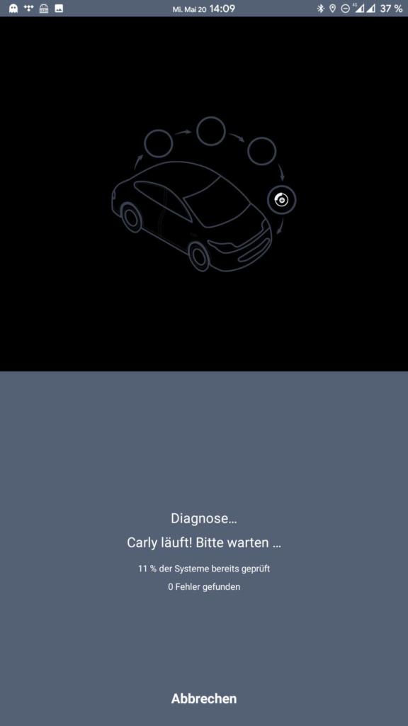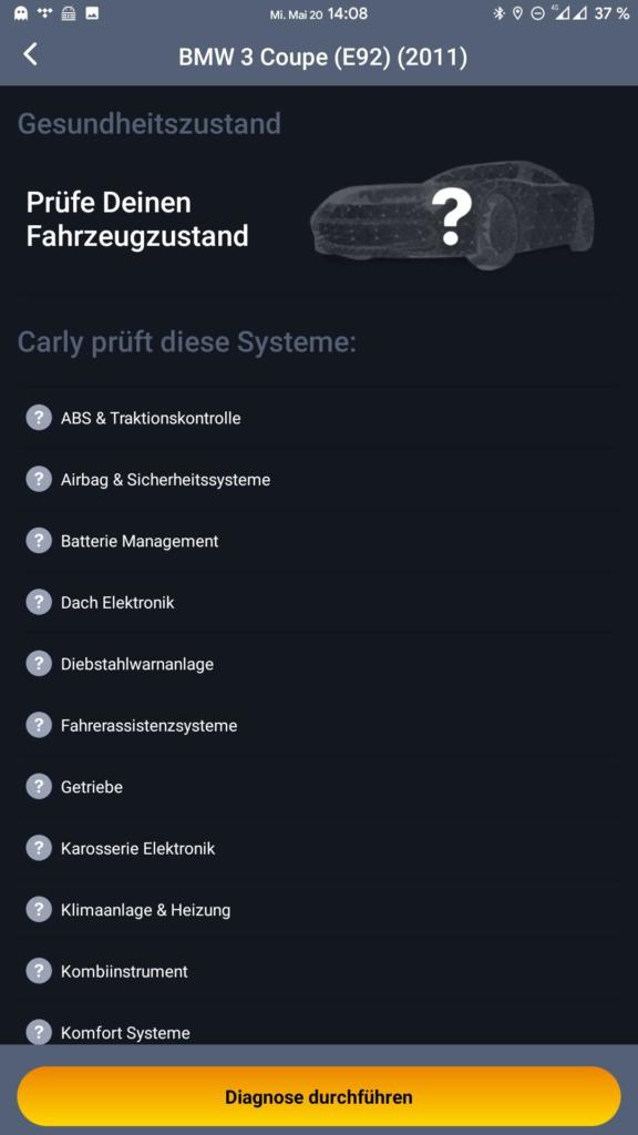 Ab sofort lässt sich die Carly App nun vollumfänglich nutzen. Erster Schritt – Fahrzeugzustand prüfen / Diagnose durchführen.