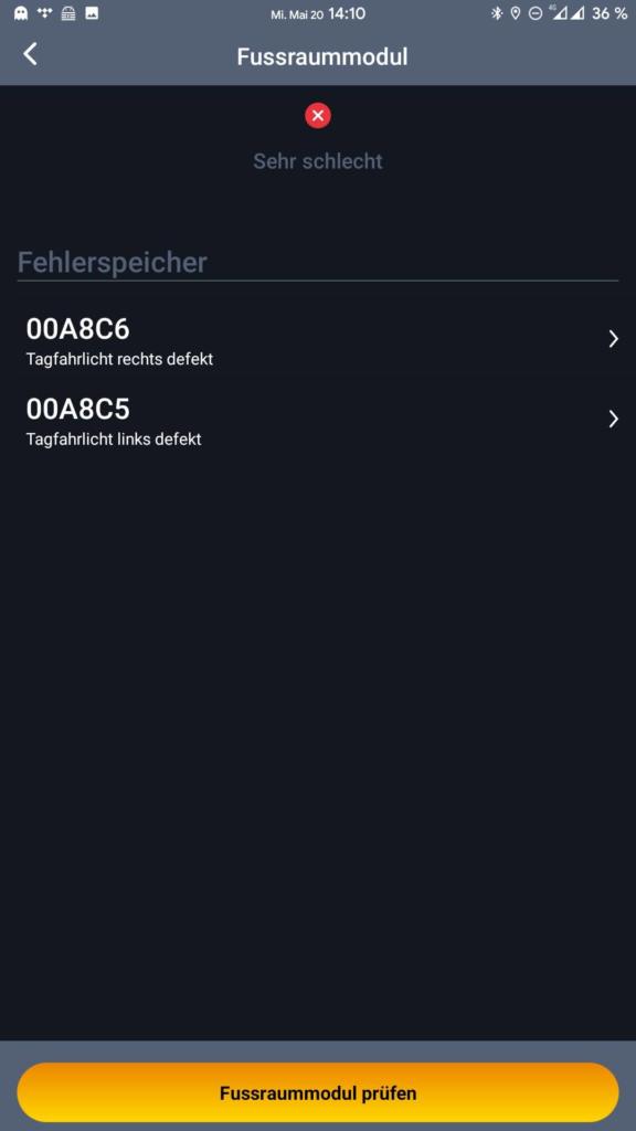 Ich habe kürzlich mein Tagfahrlicht tauschen müssen, da diese durchgebrannt waren. Dies ist als Fehler im Fußraummodul ersichtlich. Diesen und weitere Fehler konnten anschließend gelöscht werden. Sollten die Fehler in Zukunft regelmäßig wieder auftreten, sollte man der Ursache auf den Grund gehen.
