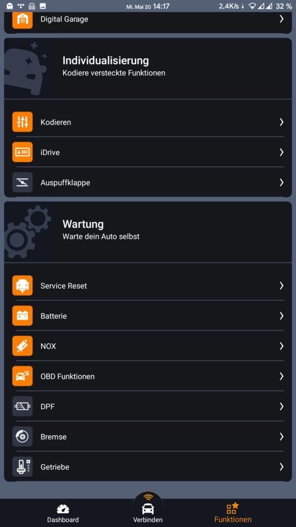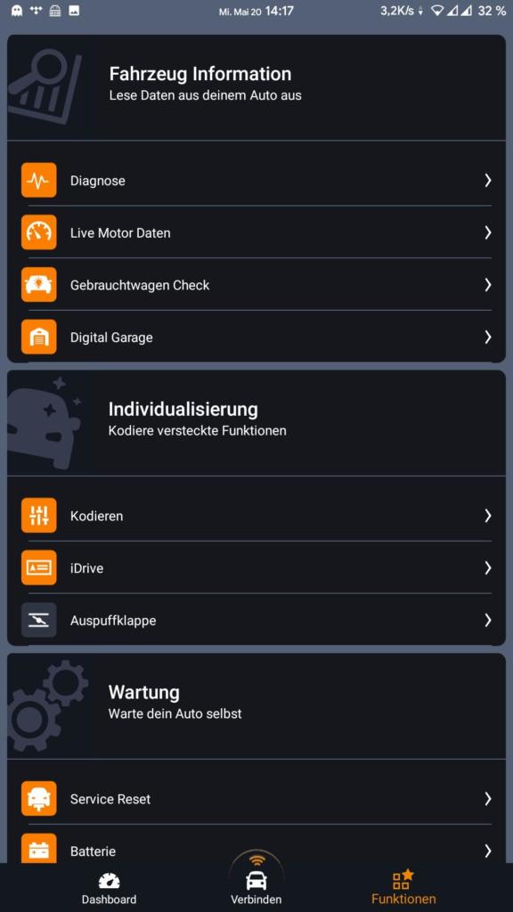 Anschließend noch ein Screenshot zu den weiteren Funktionen, die ich unter anderem schon in dem Carly App Test vorgestellt habe.